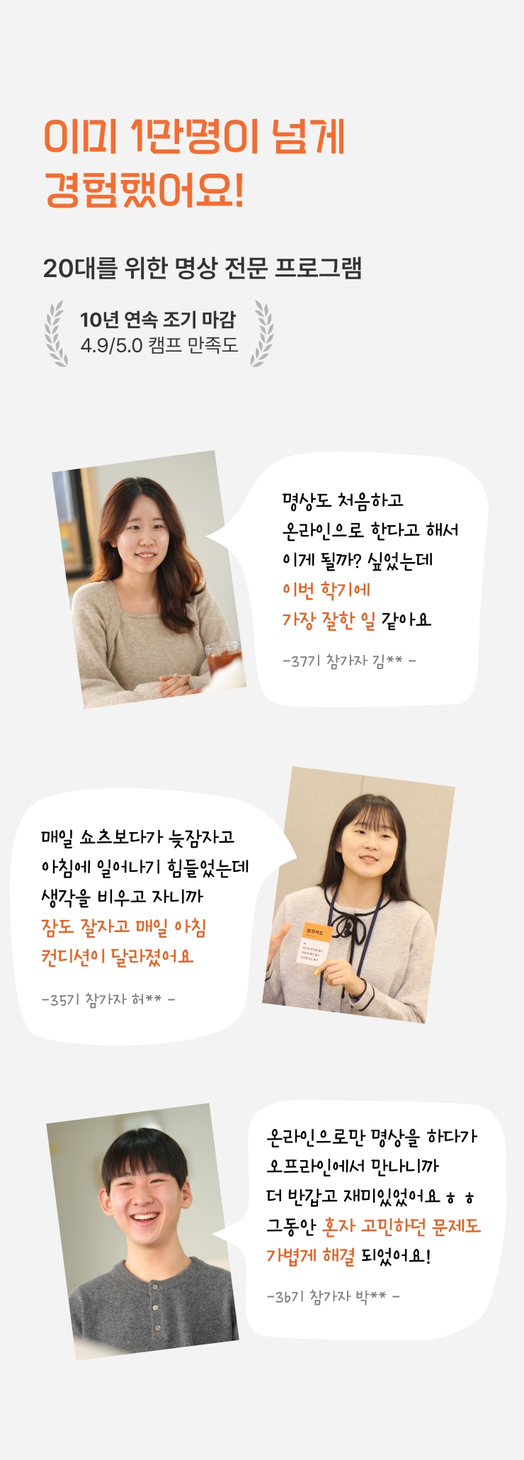 원활한 캠프 운영을 위해 단체 생활에 어려움이 될 수 있는 정신적/신체적 병력사항을 확인하고 있습니다.