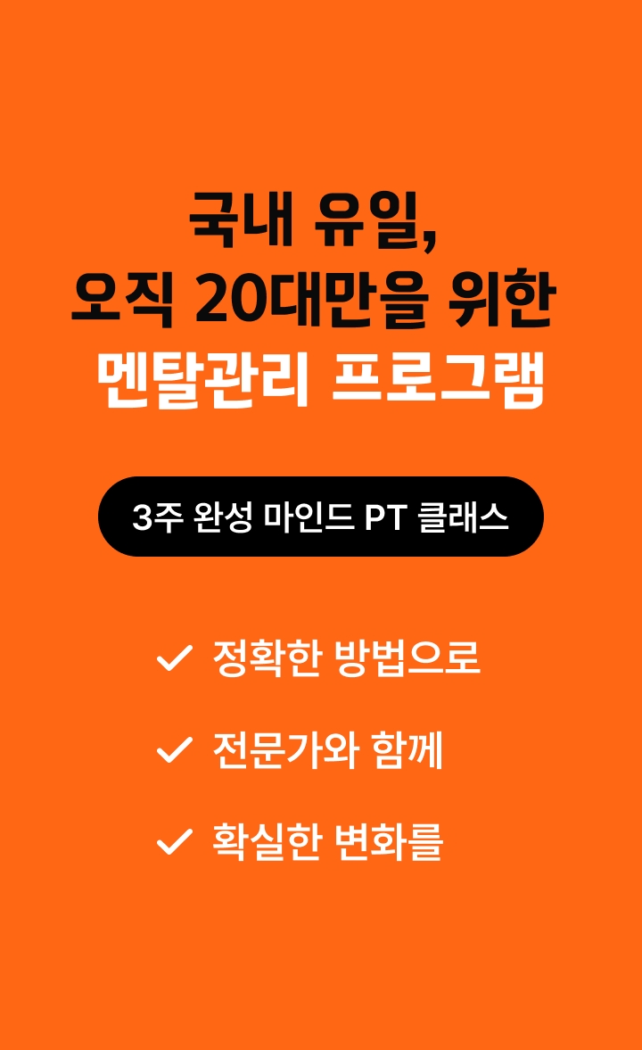 20대를 위한 국내 유일 전문 멘탈 코칭 온라인 프로그램!